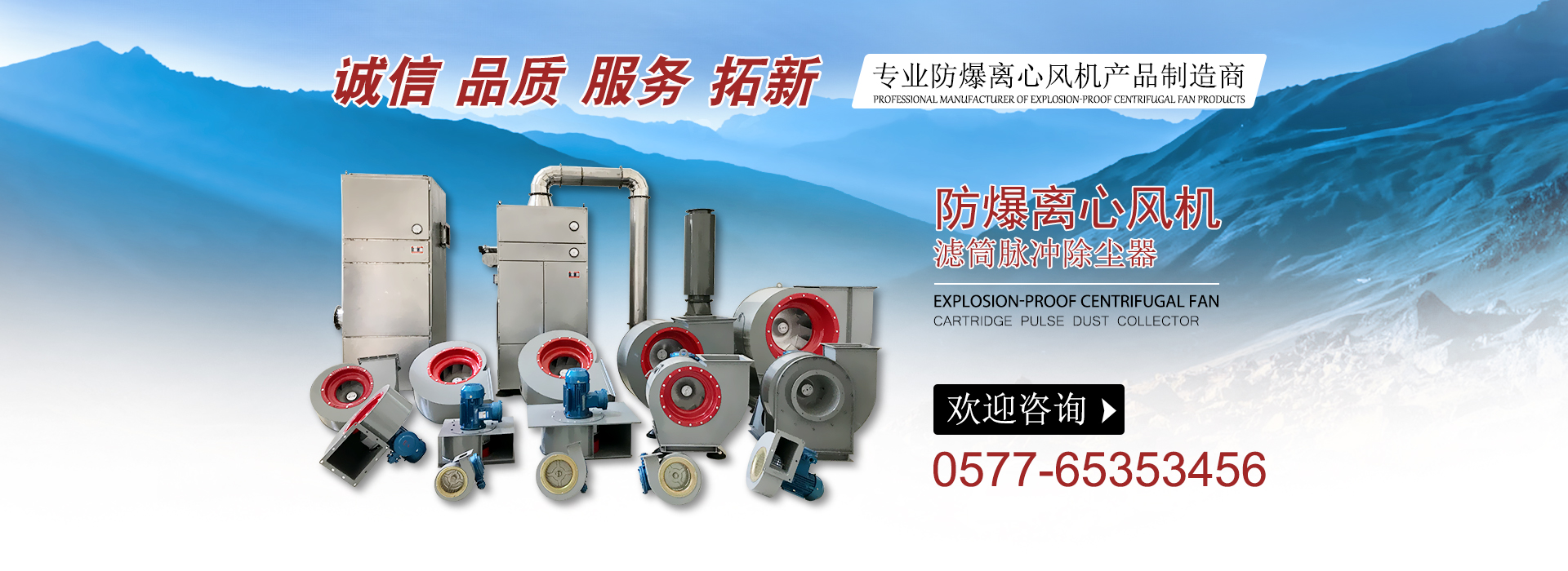 主導(dǎo)產(chǎn)品分為二大類(lèi):A 除塵設(shè)備(靜電高效除塵器,氣箱脈沖除塵器,離線(xiàn)脈沖袋式除塵器)等。B 模具壓鑄防爆風(fēng)機(jī)鋁葉輪系列,產(chǎn)品廣泛應(yīng)用于:燃油燃?xì)忮仩t旁,高濃度粉塵車(chē)間,油庫(kù),儲(chǔ)氣站,易爆物品存放倉(cāng)庫(kù),并有防爆要求的場(chǎng)合安裝使用,可輸送且有易燃易爆和易揮發(fā)性的氣體的通風(fēng)換氣用。并可按客戶(hù)要求設(shè)計(jì)定制。